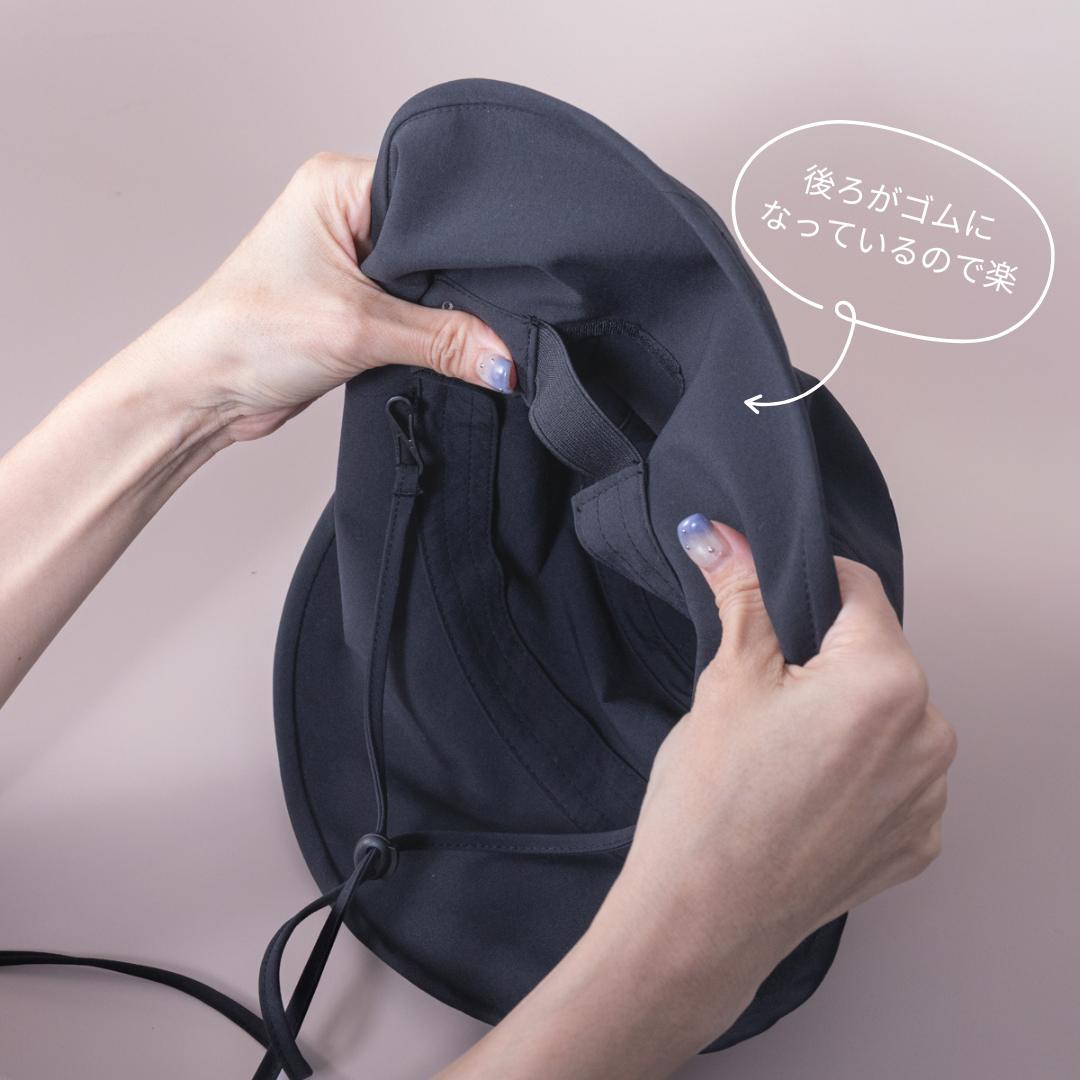 • ノンストレスなサイズ調整: 内側に伸縮性のあるゴムを採用。ピタッとフィットします。