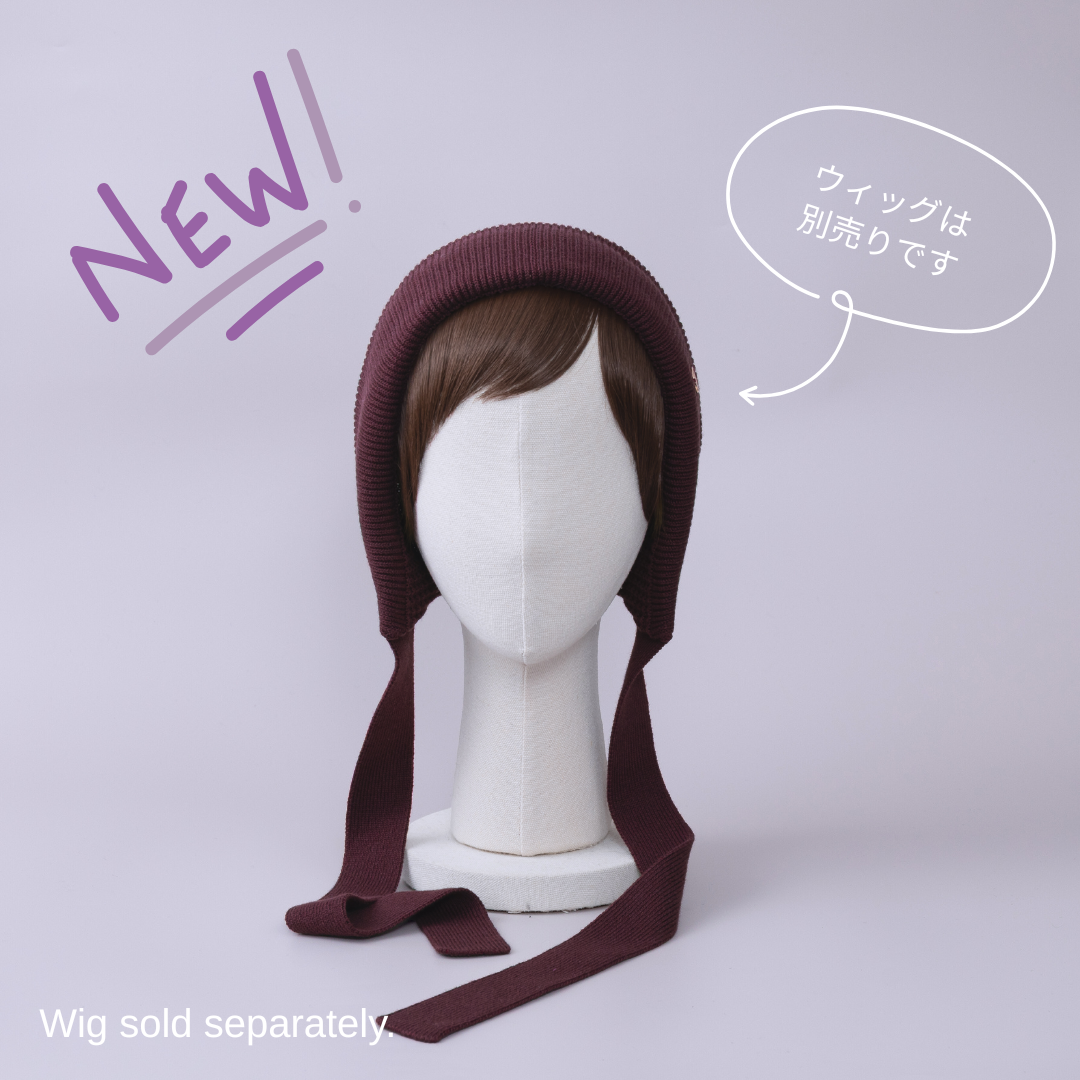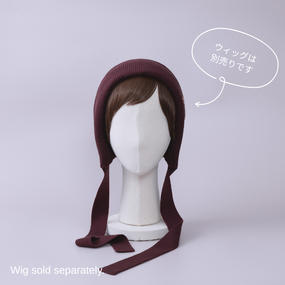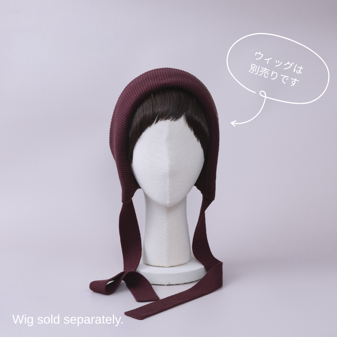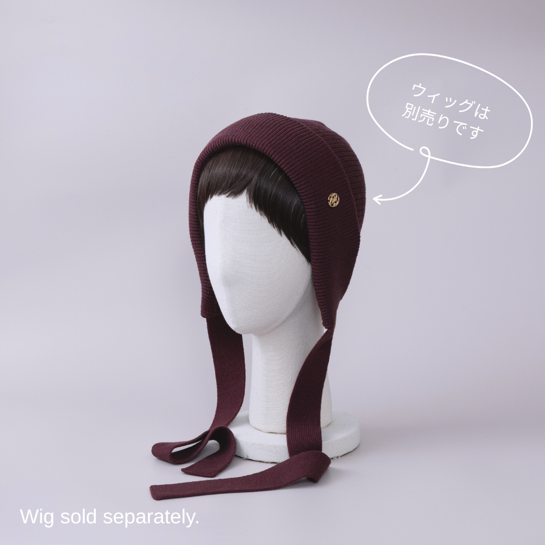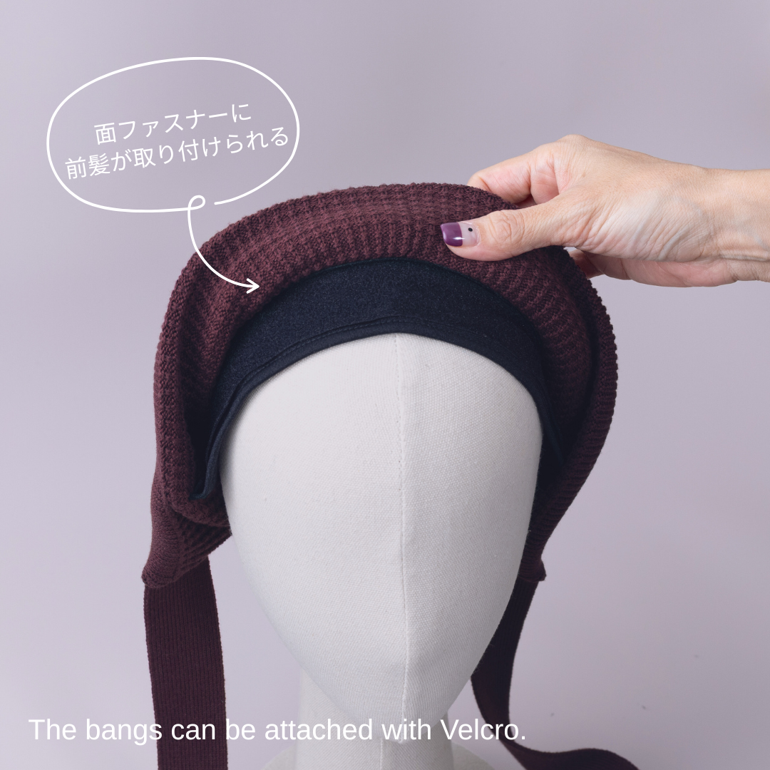 前髪ウィッグが直接取り付けられる、ニットボンネット。