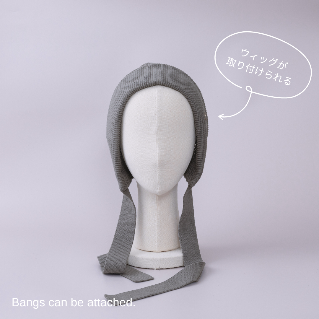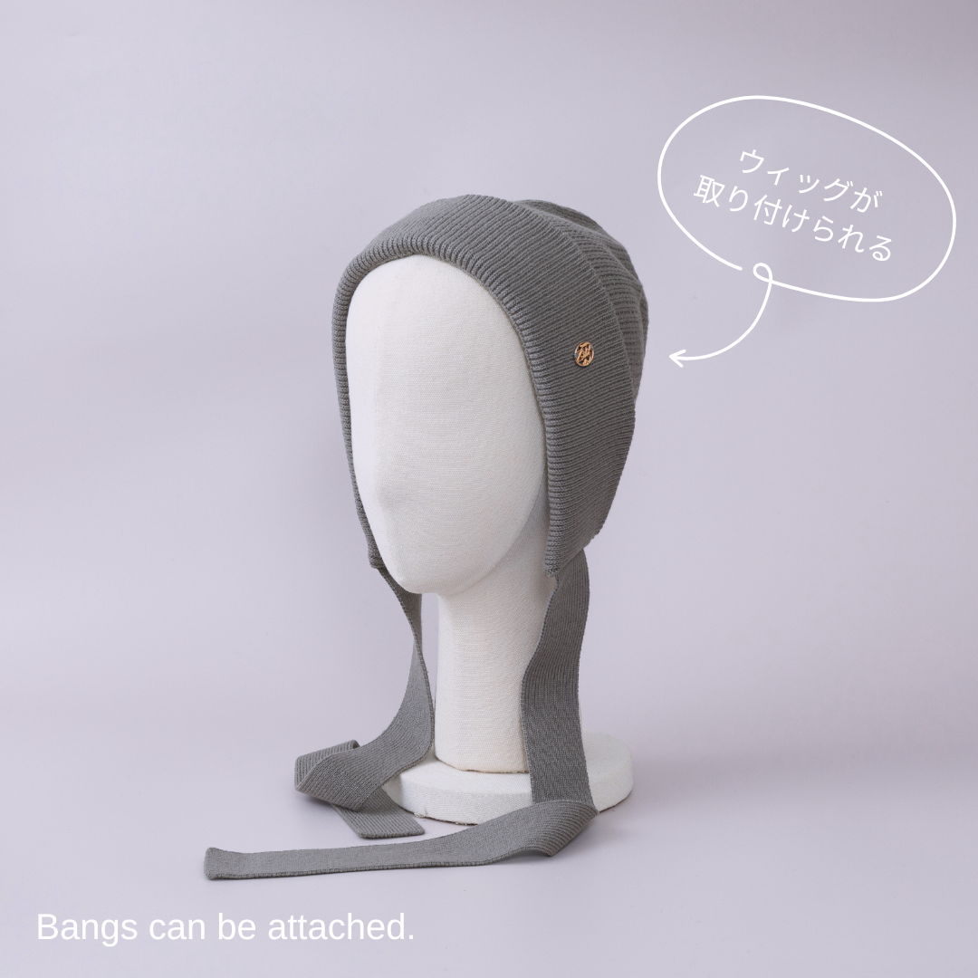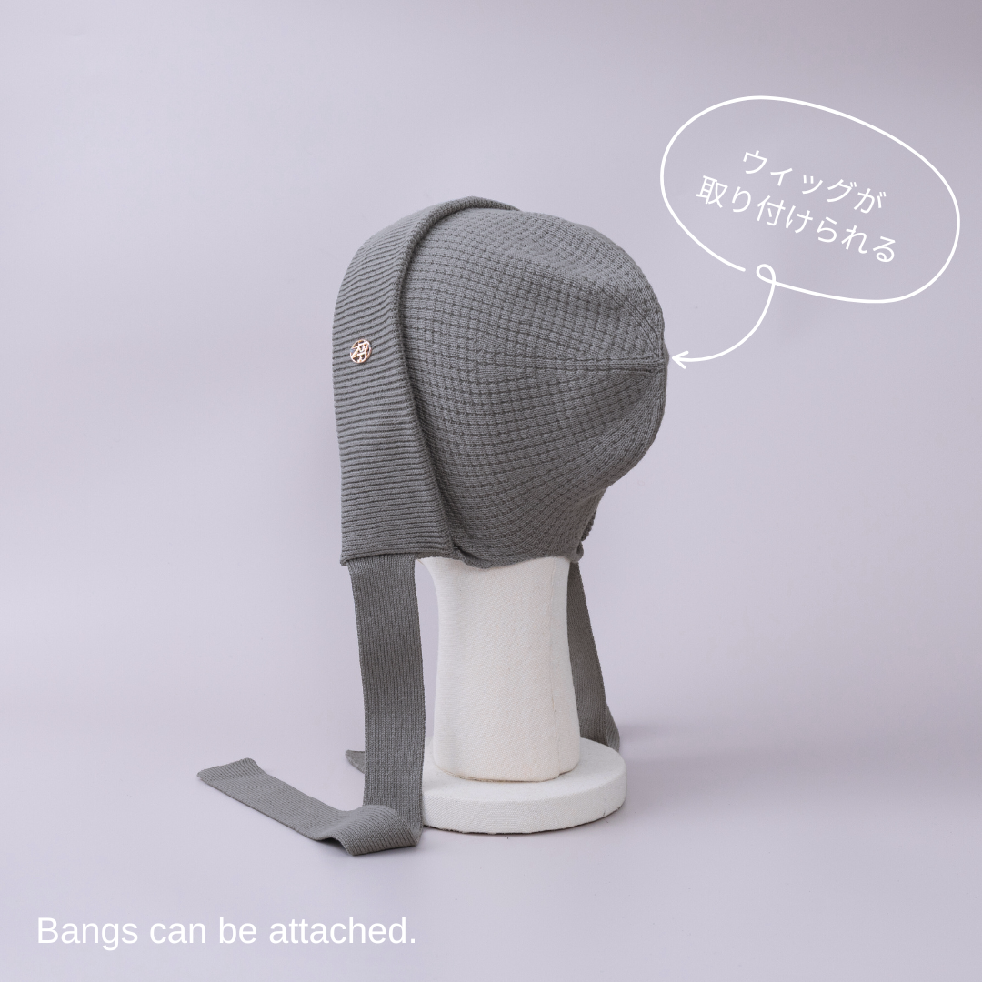 前髪ウィッグが直接取り付けられる、ニットボンネット。