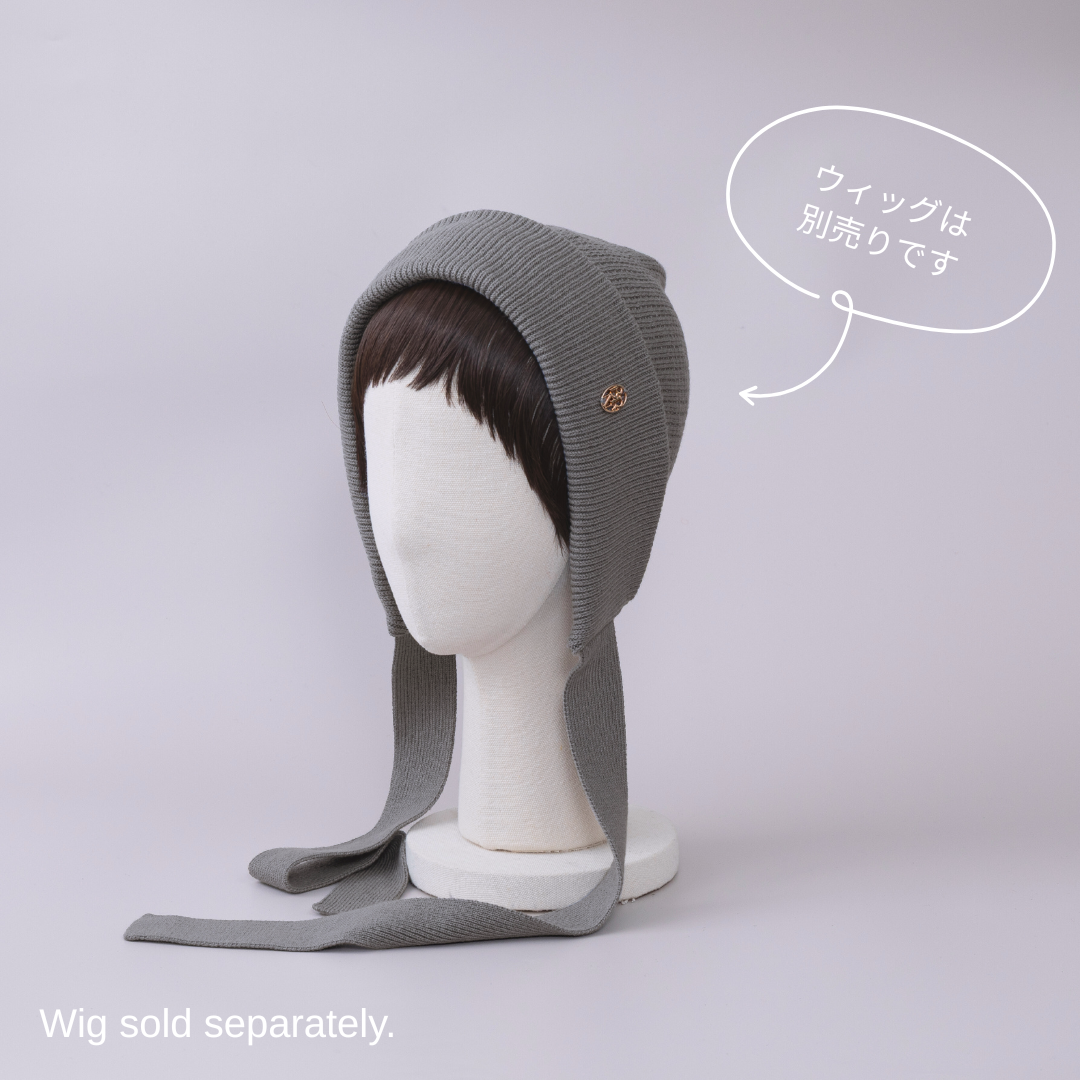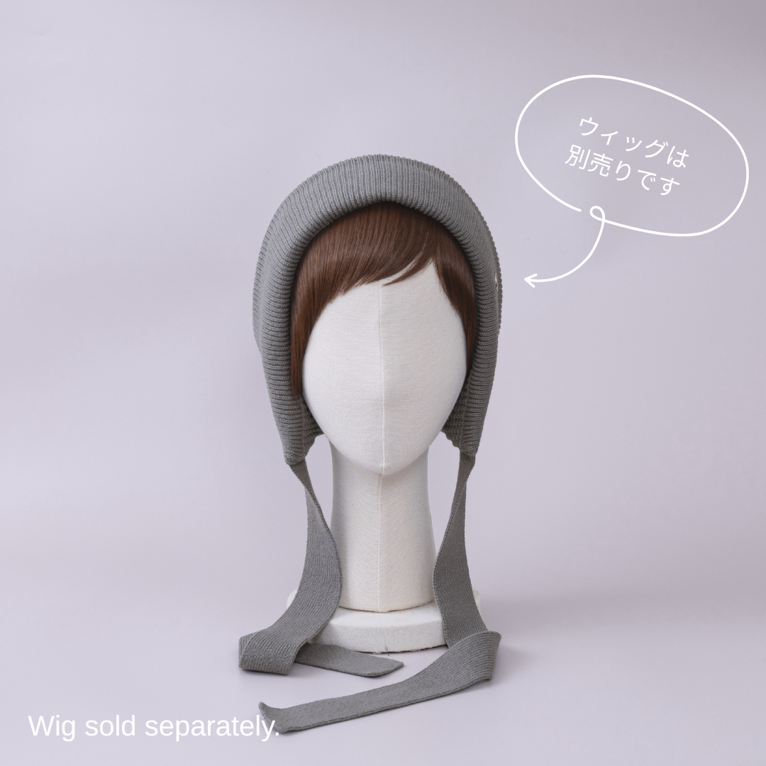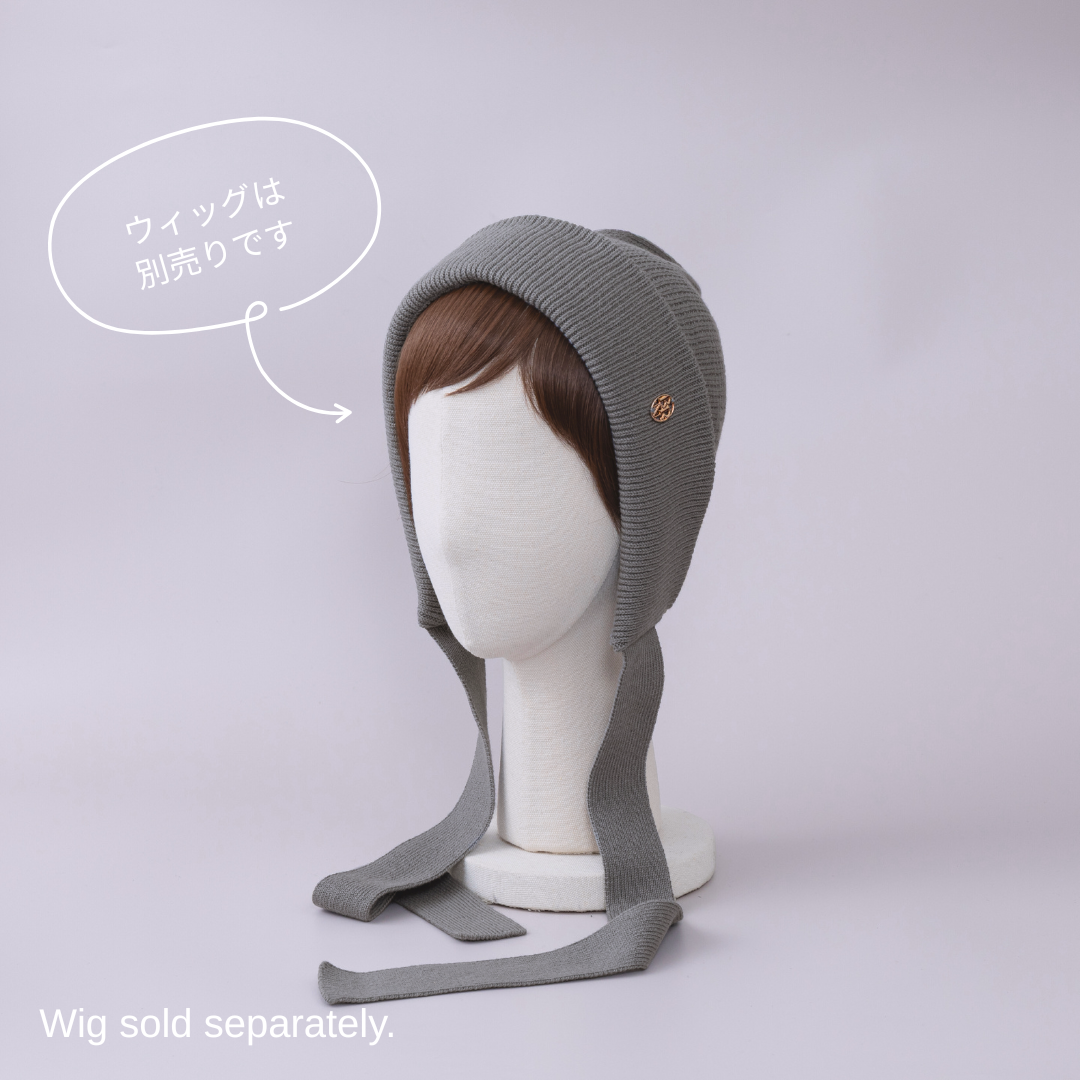前髪ウィッグが直接取り付けられる、ニットボンネット。