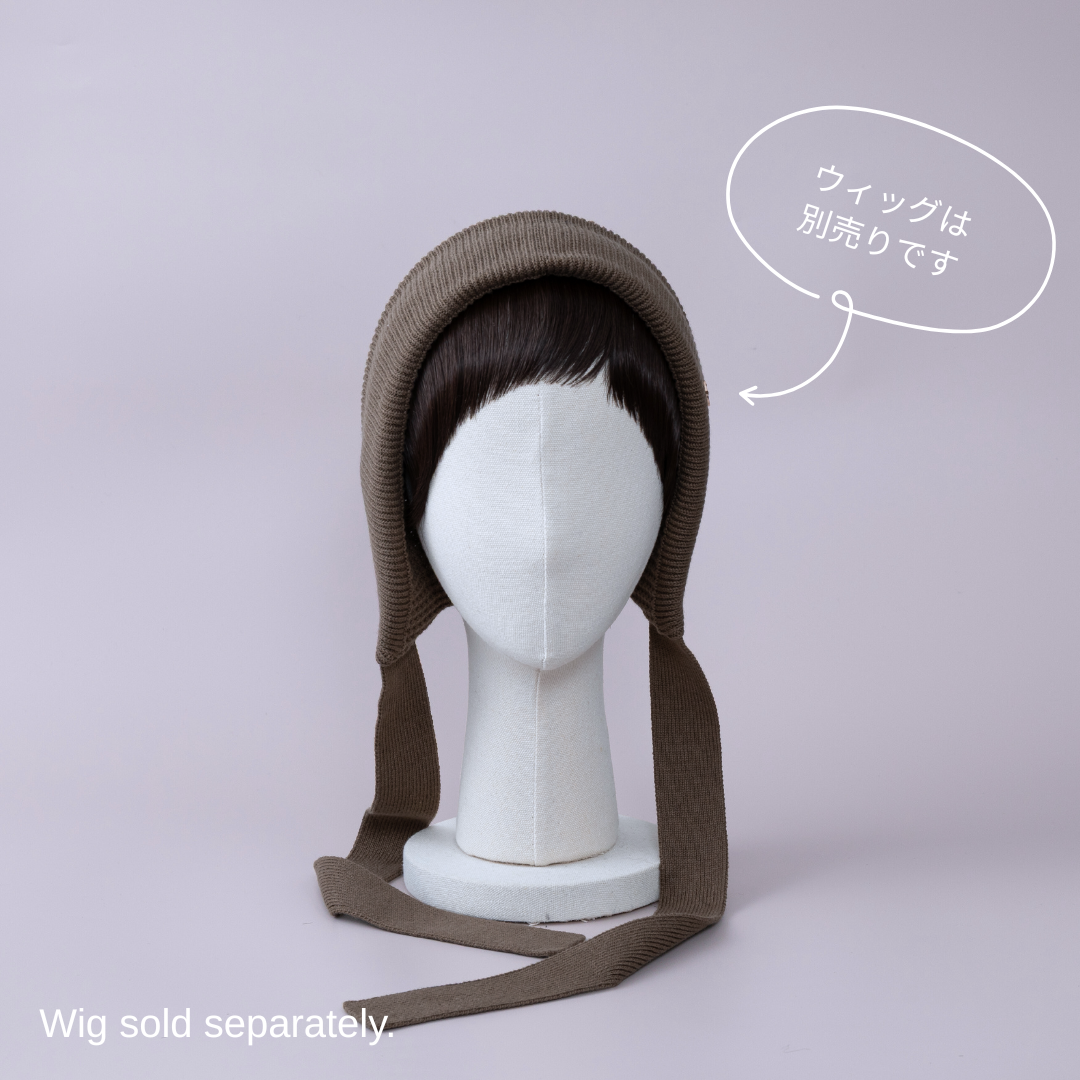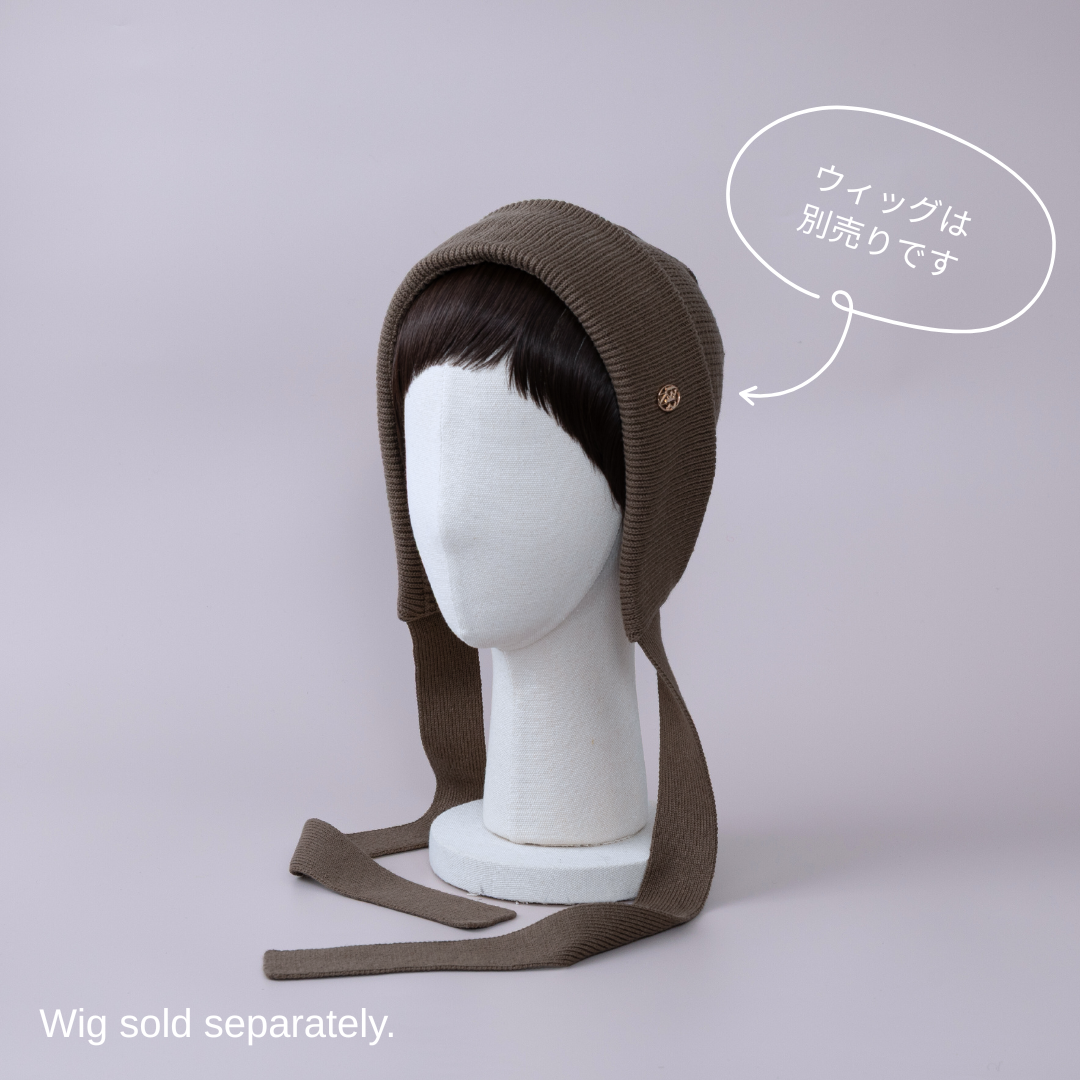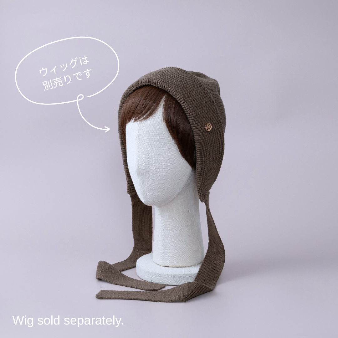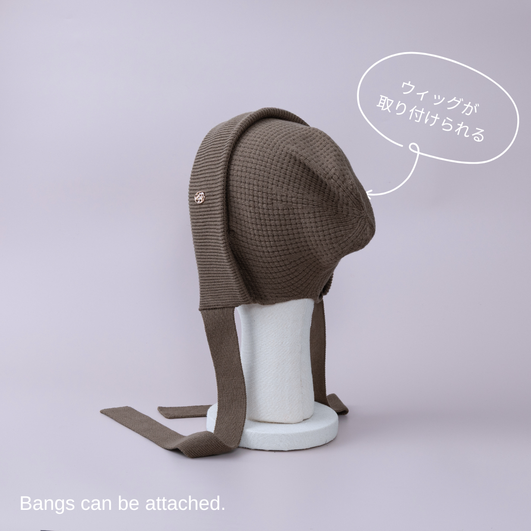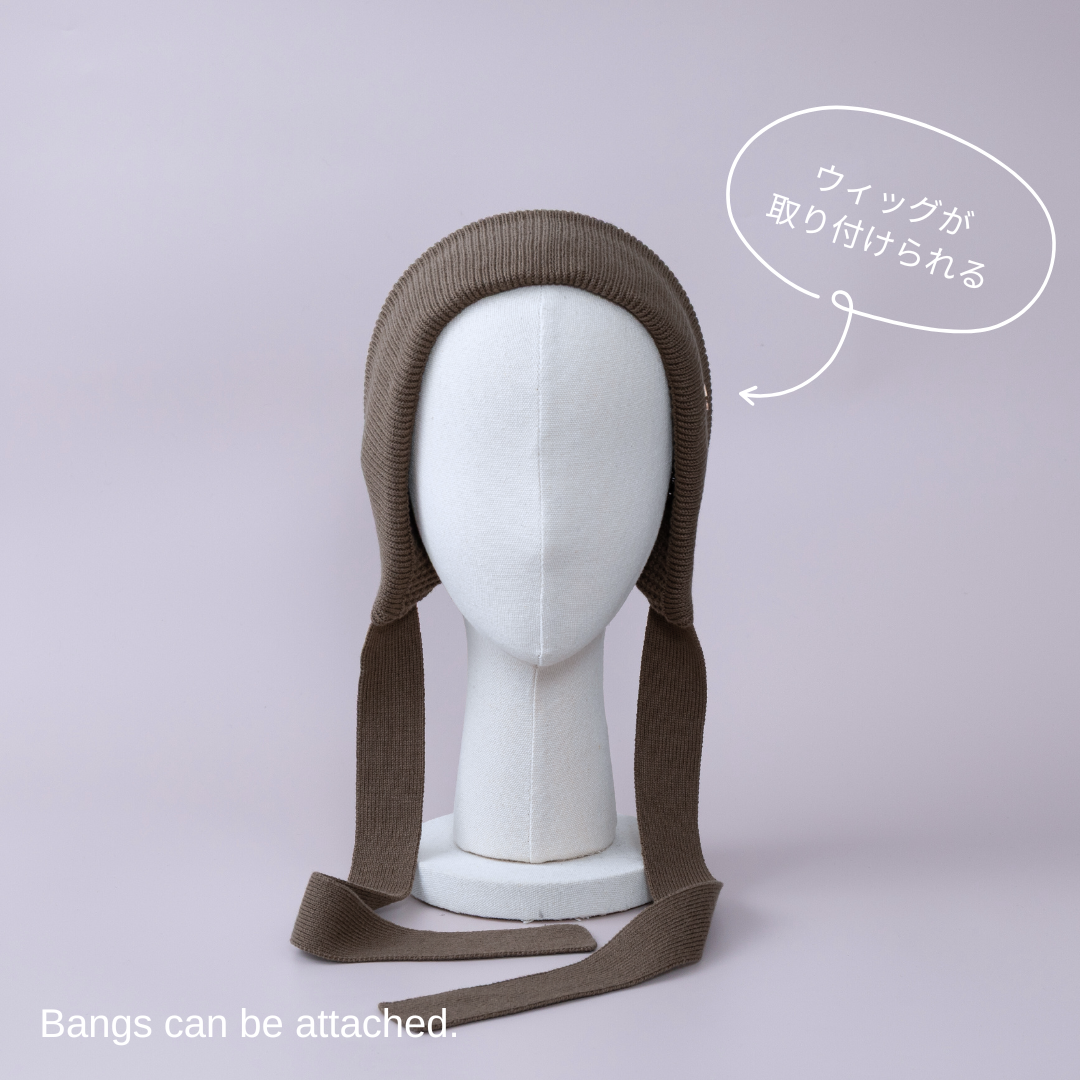 前髪ウィッグが直接取り付けられる、ニットボンネット。