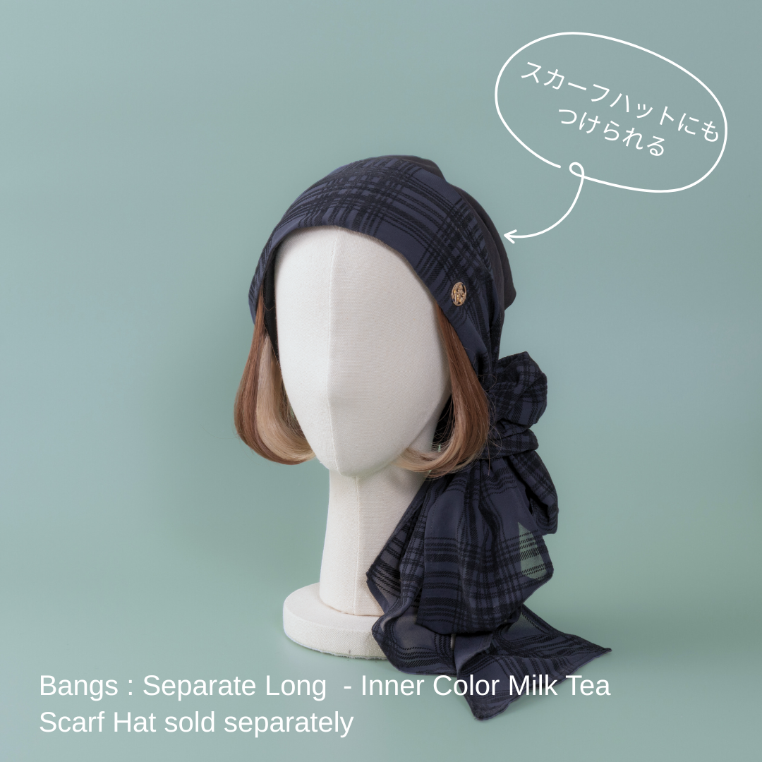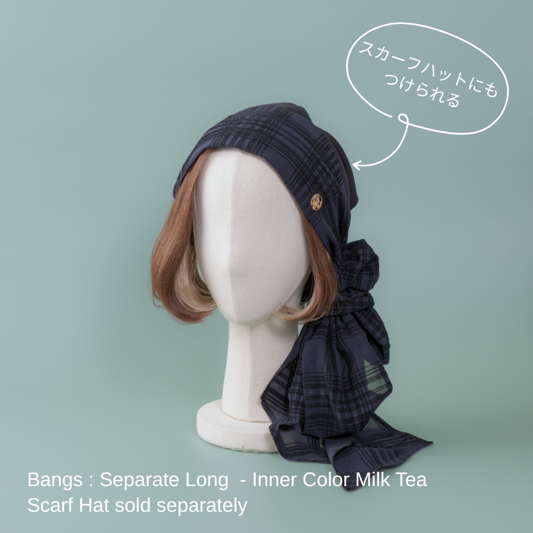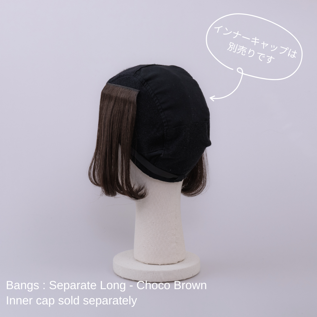 長めの前髪と裾のワンカールが、気になる輪郭をナチュラルにカバーし、女性らしい華やかさをプラスします。 2個1組で、アレンジの幅も広がります裏面の面ファスナー(医療用マジックテープ)で、BARENのスカーフハットまたは、インナーキャップと合わせて簡単に取り外せる設計になっています。